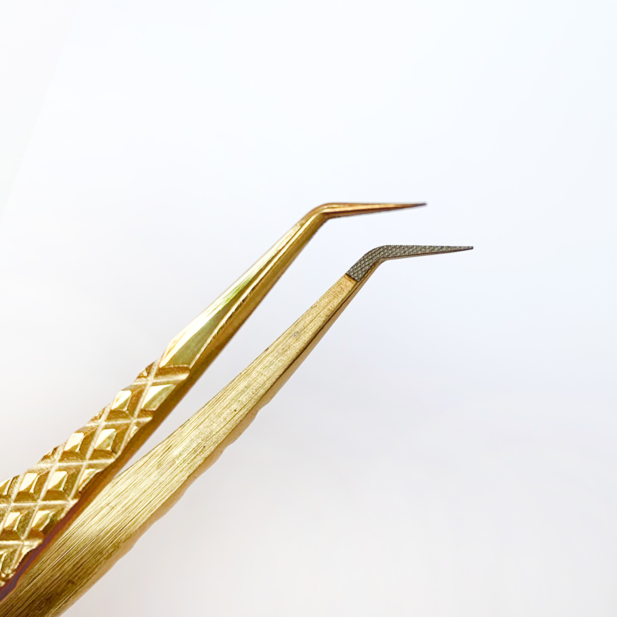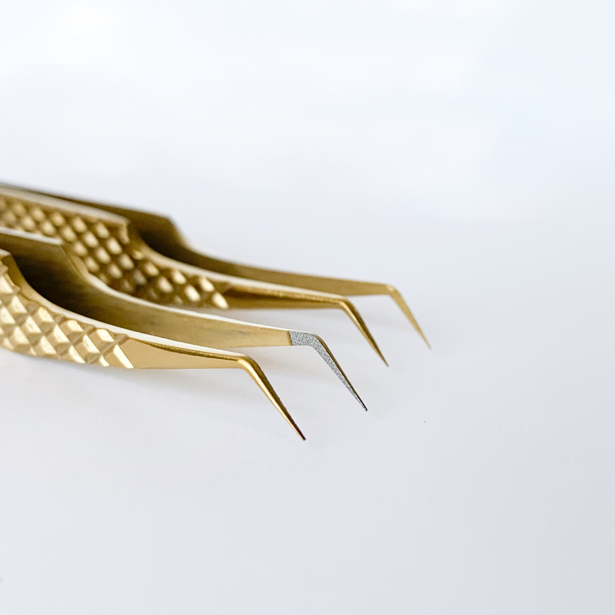 Our tweezers are now all available in a premium quality fiber tip finish. The fiber tip is designed to offer enhanced grip and control when picking up lashes. The textured tip of the tweezer prevents lashes from slipping, and offers lash artists an easier and more controlled pick up process.